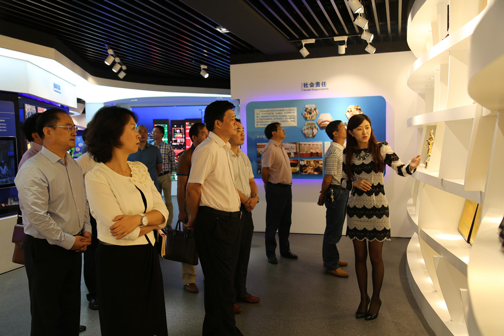 彭新軍一行領(lǐng)導(dǎo)首先參觀了企業(yè)展示中心,對(duì)山河集團(tuán)的發(fā)展歷程、代表工程、企業(yè)榮譽(yù)、企業(yè)文化進(jìn)行了全面系統(tǒng)的了解。