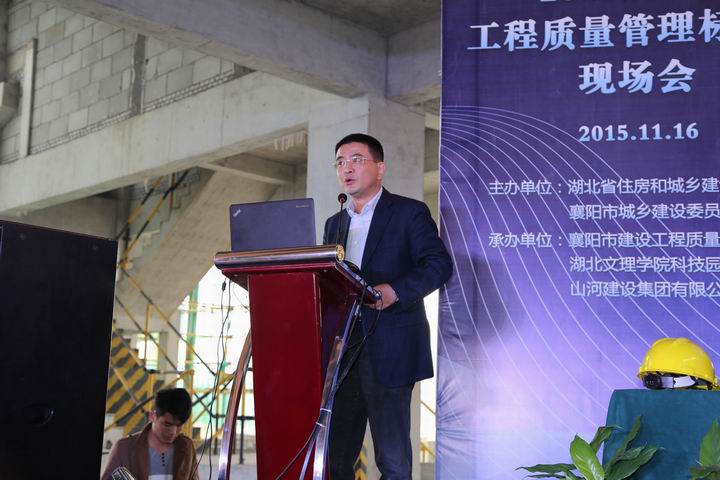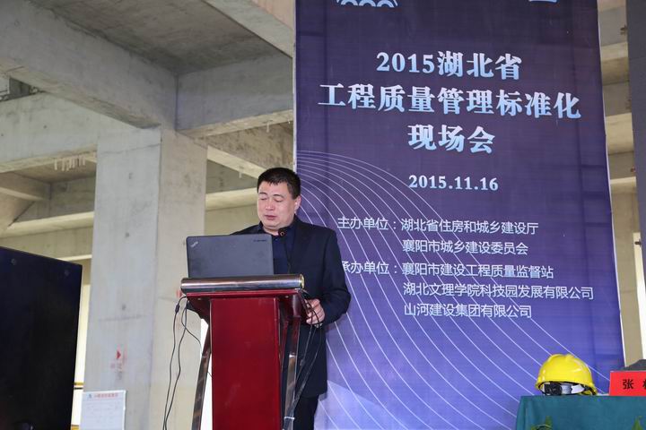 11月16日上午,湖北省工程質(zhì)量管理標(biāo)準(zhǔn)化現(xiàn)場會在湖北文理學(xué)院科技園工研院項(xiàng)目召開。省質(zhì)安總站副站長董文斌,襄陽市建委副主任盧一平、質(zhì)檢站黨委書記倪海青、站長張林、副站長黃先明,湖北文理學(xué)院校黨委常委副校長魏躍春,湖北文理學(xué)院科技園發(fā)展有限公司副總經(jīng)理寇國良,山河集團(tuán)常務(wù)副總經(jīng)理兼湖北公司總經(jīng)理林中茂、湖北公司副總經(jīng)理羅定軍、詹必強(qiáng)等參加了會議。襄陽市工程質(zhì)量監(jiān)督檢查站站長張林主持會議。