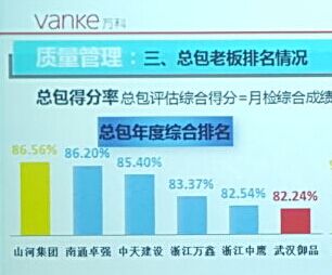 會(huì)上,南昌萬科公司依據(jù)月檢及季檢中質(zhì)量、安全、實(shí)測(cè)實(shí)量等指標(biāo),對(duì)2015年各項(xiàng)目總包進(jìn)行統(tǒng)計(jì)排名。經(jīng)過評(píng)比,山河集團(tuán)以優(yōu)異的成績?cè)谀喜f科眾多總包中排名第一,再次獲評(píng)“南昌萬科最佳總包”。