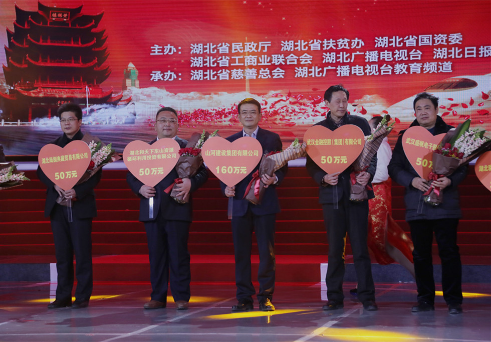 晚會現(xiàn)場,集團常務(wù)副總林中茂代表山河集團舉牌捐贈160萬元,并獲得由湖北省慈善總會頒發(fā)的榮譽證書。捐贈過程中,湖北省省委書記李鴻忠和省長王國生分別發(fā)表重要講話,感謝長期以來為全省扶貧事業(yè)作出了重要貢獻的企業(yè),希望企業(yè)發(fā)展不忘回報社會,并一直熱心支持湖北省慈善事業(yè)的發(fā)展。