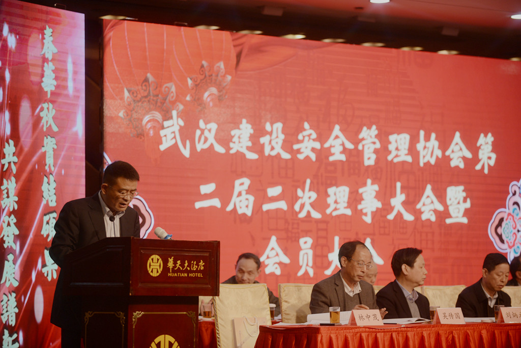 武漢市建筑安全協(xié)會(huì)副會(huì)長(zhǎng)、山河集團(tuán)常務(wù)副總經(jīng)理林中茂主持會(huì)議。武漢市建委副主任夏平,市民政局處長(zhǎng)張福先,市建委質(zhì)安處處長(zhǎng)謝衛(wèi)華,市安全監(jiān)管站站長(zhǎng)熊付剛、書(shū)記王偉震、副站長(zhǎng)周捍東,市安全協(xié)會(huì)應(yīng)志剛等領(lǐng)導(dǎo)及在漢建筑施工單位參會(huì)代表共計(jì)400余人參加此次會(huì)議。