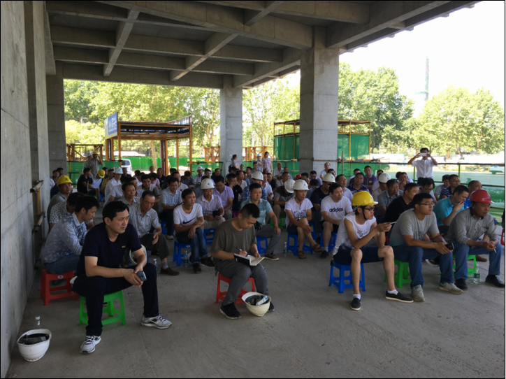 為提高項目部外腳手架的搭設(shè)水平和觀感質(zhì)量,7月23日,湖北公司安全部在青山科技體育中心項目部召開了外腳手架內(nèi)部交流會。湖北區(qū)域部分在建項目的現(xiàn)場負責(zé)人、安全員、架子工負責(zé)人及班組長等共計110余人參加了會議。會議由集團安全部經(jīng)理兼湖北公司安全部經(jīng)理陳敬章主持。