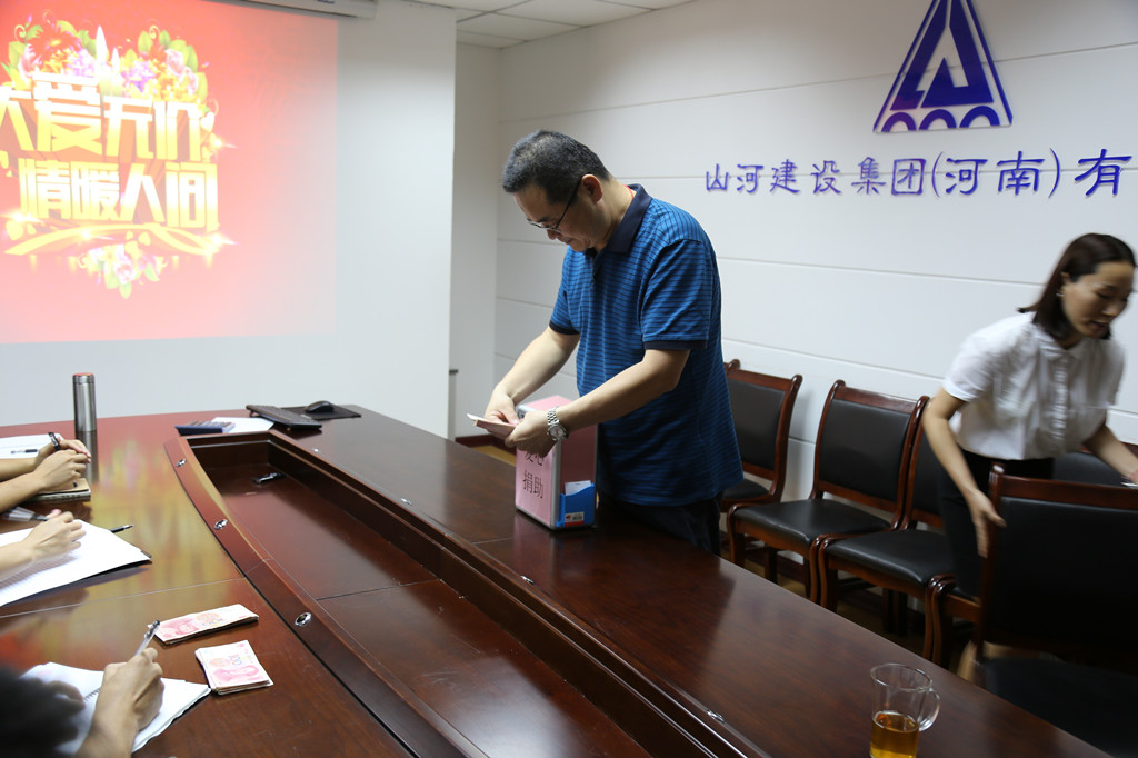 2016年7月,山河集團(tuán)工會(huì)發(fā)出倡議后,河南公司積極響應(yīng)號(hào)召,各項(xiàng)目部紛紛踴躍捐款。