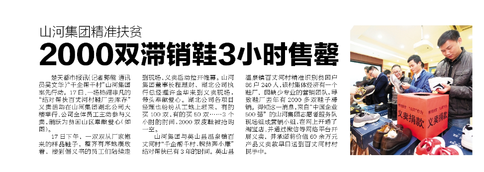 《楚天都市報》刊發(fā) 山河集團(tuán)精準(zhǔn)扶貧--2000雙滯銷鞋3小時售罄