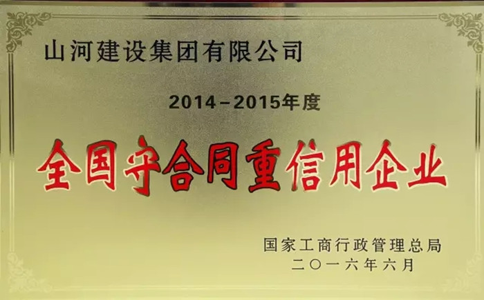近日,山河集團(tuán)被國家工商行政管理總局評為2014-2015年度“全國守合同重信用企業(yè)”,這是集團(tuán)第二次獲此殊榮。