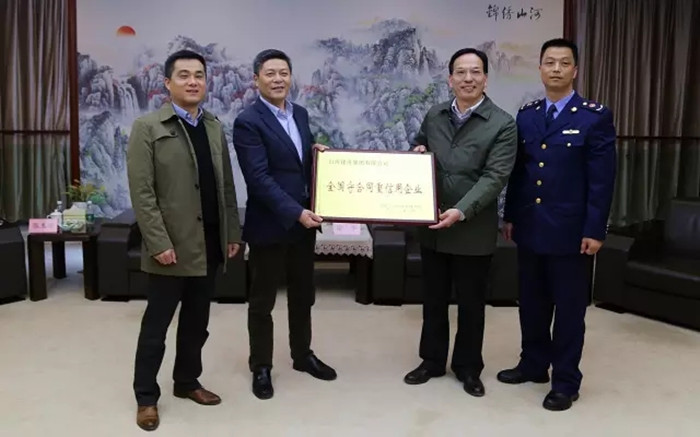 團(tuán)風(fēng)縣委常委、副縣長涂軍(右二)向山河集團(tuán)董事長程理財(cái)(左二)授牌