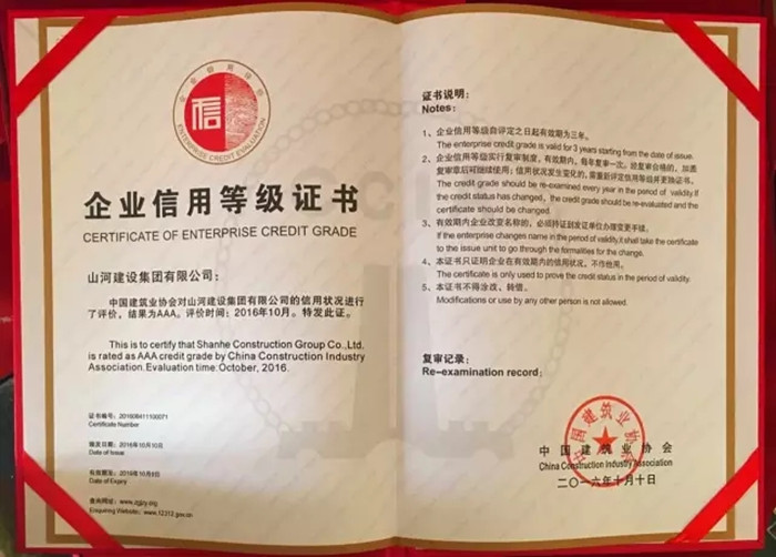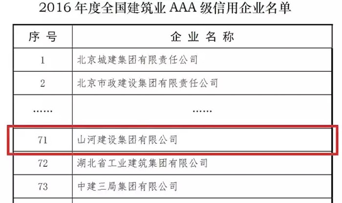 再傳喜訊 山河集團(tuán)榮獲“全國(guó)建筑業(yè)AAA級(jí)信用企業(yè)”稱號(hào)