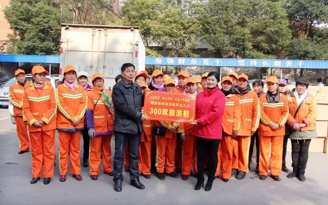 12月29日,山河集團(tuán)開展暖冬行動(dòng)再次起航第二站――“足底下的溫暖”,贈(zèng)送黃州市區(qū)的環(huán)衛(wèi)工人300雙旅游鞋,讓在寒冬里工作的環(huán)衛(wèi)工人足底保暖。