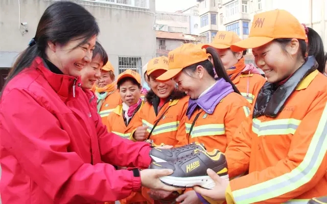 現(xiàn)場(chǎng)領(lǐng)到旅游鞋的環(huán)衛(wèi)工人,每天早晨4點(diǎn)多就要起床去上班,即使多穿一些,清晨刺骨的寒風(fēng)也讓人十分難受,山河集團(tuán)給送來(lái)的一雙雙鞋子,不僅讓她們感受到了社會(huì)對(duì)環(huán)衛(wèi)工人的關(guān)愛和尊重,更讓她們感到溫暖和幸福。