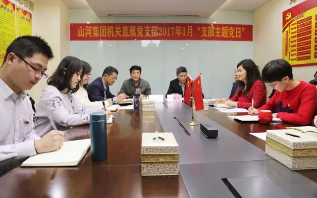 1月4日,山河集團(tuán)機(jī)關(guān)直屬黨支部召開(kāi)2017年第一個(gè)“支部主題黨日”活動(dòng),支部黨員共22人在集團(tuán)黨建活動(dòng)室參加學(xué)習(xí),活動(dòng)由支部書(shū)記程秋明主持,集團(tuán)黨委書(shū)記、董事長(zhǎng)程理財(cái)以普通黨員身份出席。
