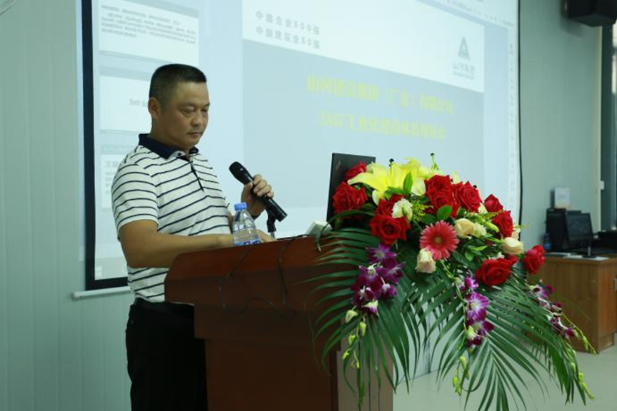 山河集團廣東公司副總經(jīng)理趙衛(wèi)對SSGF新建造體系的發(fā)展以及優(yōu)勢與參觀人員作了分享,讓大家感受到建筑行業(yè)一場新革命的到來;紫辰花園SSGF示范項目的項目經(jīng)理佘志斌就施工過程中的經(jīng)驗與參會人員進行簡單交流。