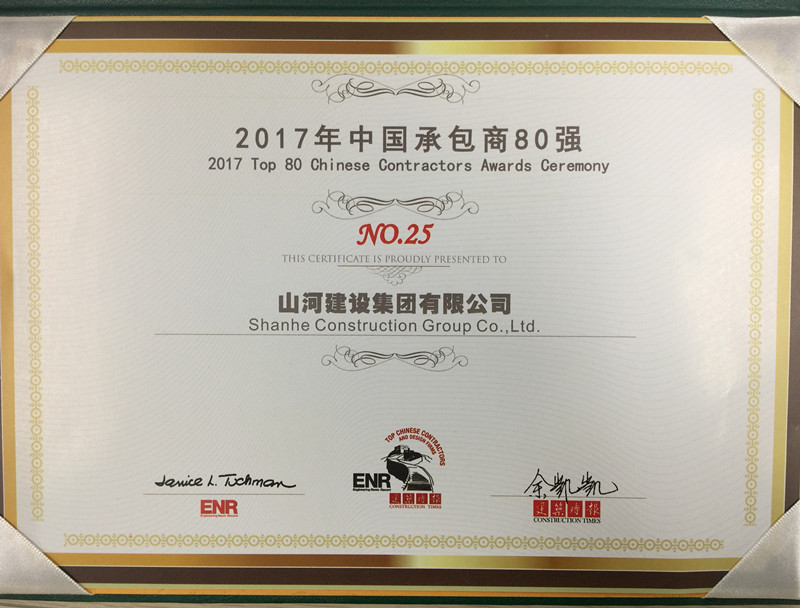 山河集團位列中國承包商80強第25位
