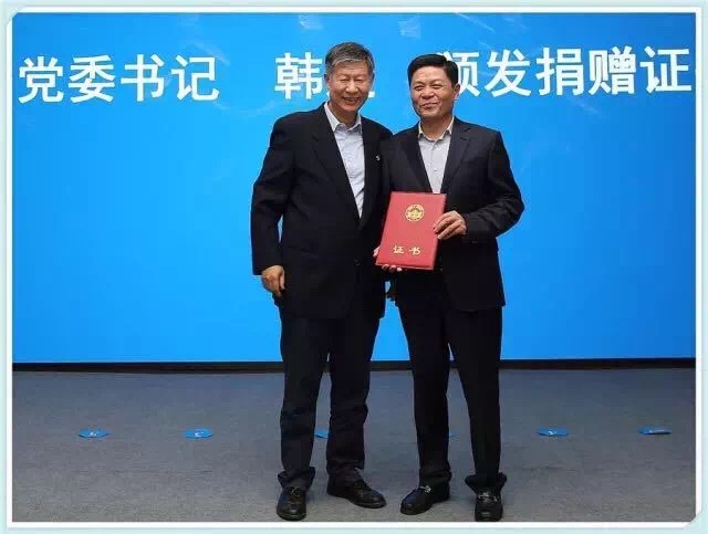 ▲武大黨委書記韓進(jìn)為董事長程理財頒發(fā)捐贈證書