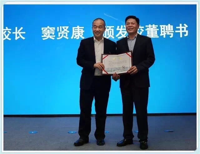 ▲武大校長竇賢康向董事長程理財頒發(fā)校董聘書