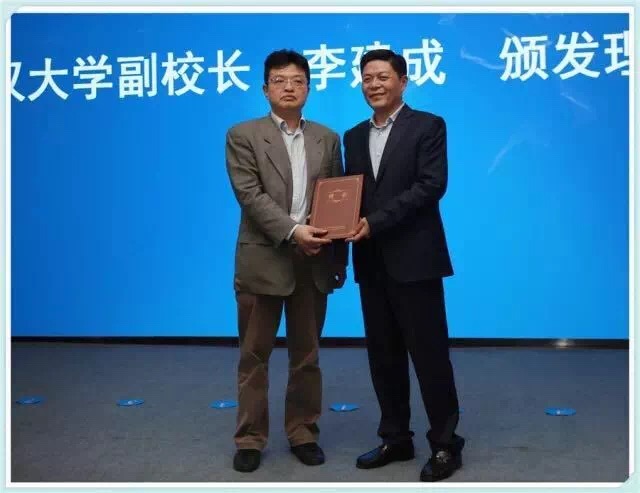 武漢大學(xué)黨委書記韓進(jìn)、校長竇賢康、副校長李建成分別為董事長程理財頒發(fā)人才引進(jìn)基金捐贈證書、武漢大學(xué)董事會董事聘書、人才引進(jìn)基金理事會常務(wù)理事聘書。