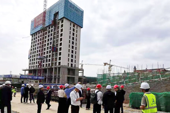 當(dāng)天下午,與會(huì)人員來(lái)到天嬌城四期項(xiàng)目工地,參觀了售樓部和施工區(qū)、堆料區(qū)等。藍(lán)光發(fā)展相關(guān)負(fù)責(zé)人對(duì)山河集團(tuán)抓質(zhì)量、保安全、促進(jìn)度的各項(xiàng)做法給予了充分肯定,雙方就項(xiàng)目的相關(guān)情況交換了意見(jiàn)。