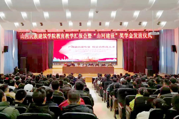 初冬時(shí)節(jié),寒意漸濃,12月11日上午,恩施職業(yè)技術(shù)學(xué)院學(xué)術(shù)報(bào)告廳里暖意融融。山河建設(shè)集團(tuán)總裁許金華,集團(tuán)人力資源總監(jiān)李穎、人力資源部總經(jīng)理匡亦成,工程技術(shù)管理部BIM中心主任李圣龍一行和學(xué)校200余名師生在這里聆聽了山河民族建筑學(xué)院教育教學(xué)匯報(bào)會(huì),共同見證了“山河建設(shè)”獎(jiǎng)學(xué)金發(fā)放儀式。會(huì)議由山河民族建筑學(xué)院副院長(zhǎng)雷元?jiǎng)P主持。