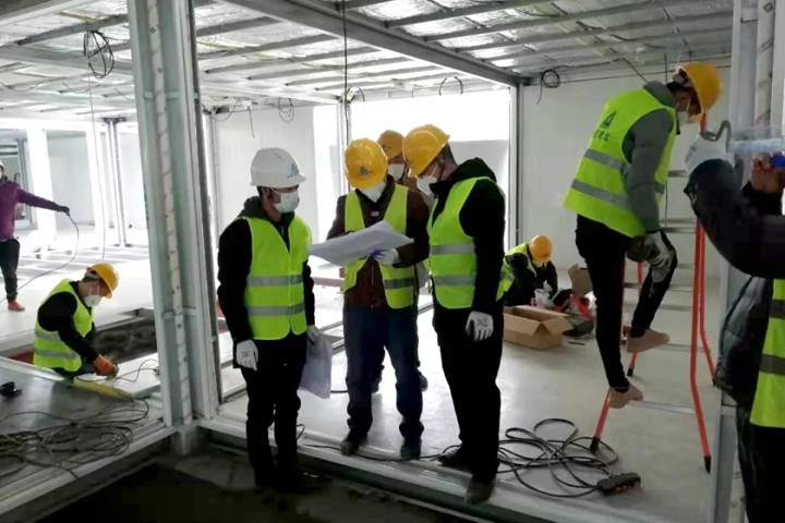 2月2日,武漢雷神山醫(yī)院建設(shè)項(xiàng)目指揮部發(fā)來(lái)緊急任務(wù):需要支援安裝雷神山醫(yī)院“醫(yī)療隔離區(qū)”集裝箱隔斷工人。山河集團(tuán)接到消息后,火速集結(jié)人力和物資,20余名管理人員和專業(yè)技術(shù)工人立即奔赴雷神山。