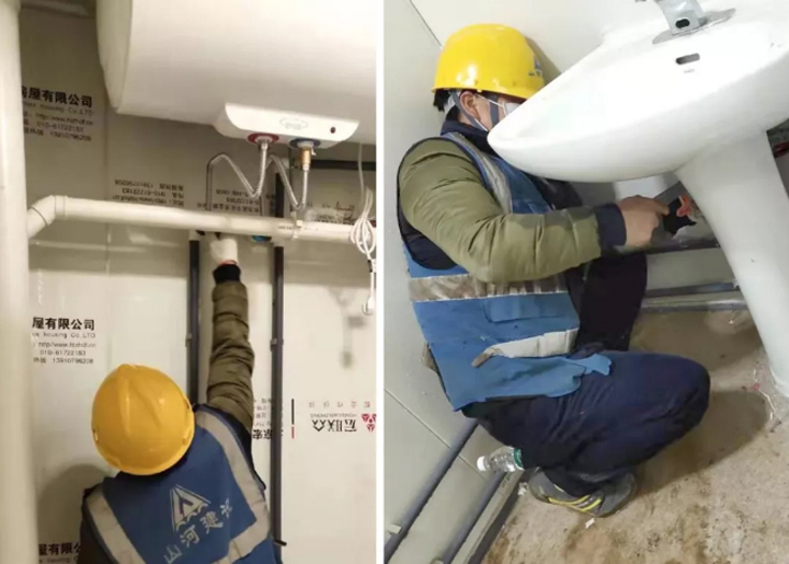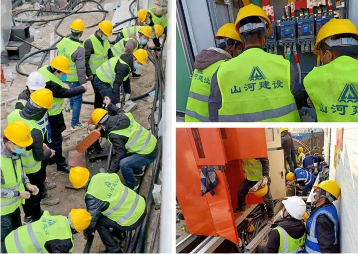 而這一天的背后,山河集團(tuán)“火神山”突擊小組的建設(shè)者們也迎來(lái)了最后的“沖刺”階段。凌晨,施工現(xiàn)場(chǎng)仍是一派熱火朝天,一邊是淋浴間、洗漱臺(tái)等設(shè)備設(shè)施在進(jìn)行最后收尾安裝和檢查,一邊水電工人正在緊鑼密鼓地安裝配電房的電纜……施工人員挑燈夜戰(zhàn),24小時(shí)不眠不休,為了能在2月3日正式收治病患全力沖刺。