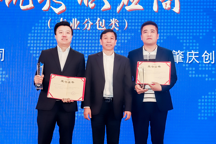 ▲常務(wù)副總經(jīng)理劉永國為優(yōu)秀供應(yīng)商(專業(yè)分包類)頒獎(jiǎng)