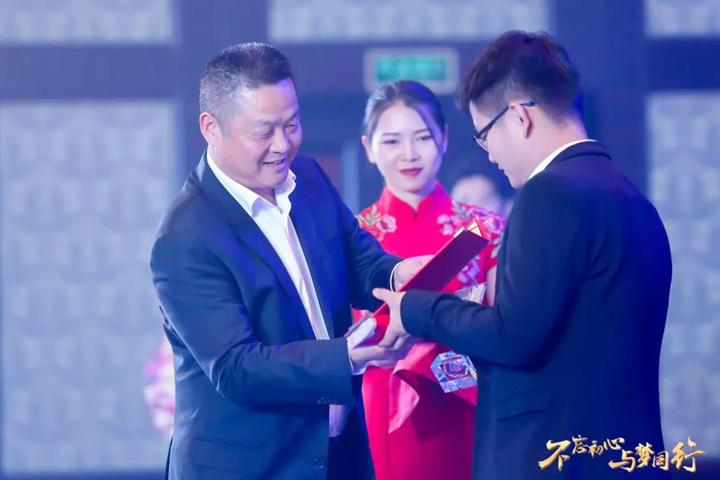 ▲總經(jīng)理陳澤龍為優(yōu)秀項(xiàng)目經(jīng)理頒獎(jiǎng)