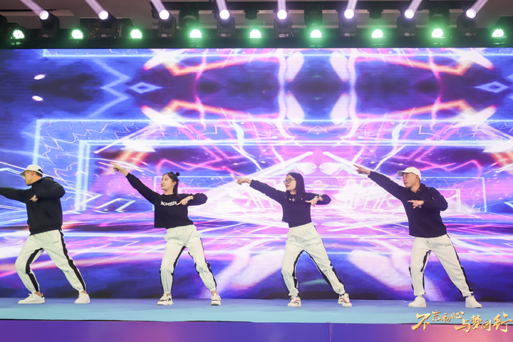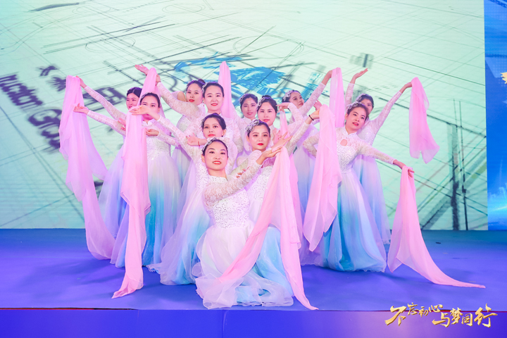 現(xiàn)場齊聲倒計(jì)時(shí)過后,伴隨著動(dòng)人的音樂聲,寄托著深深祝福的開場舞《筑夢》拉開了年會(huì)的序幕。