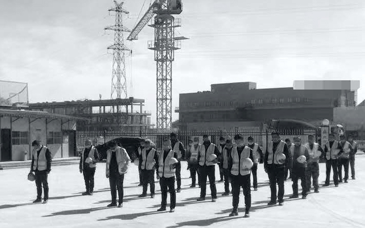 10:00整,防空警報鳴響,項目部全體人員面向國旗,沉重的心隨著警笛的響起愈發(fā)凝重,大家集體默哀3分鐘,向英雄致敬,愿逝者安息,盼山河無恙,人間皆安。