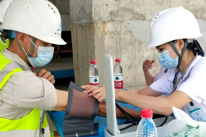 項(xiàng)目部邀請(qǐng)專(zhuān)業(yè)醫(yī)護(hù)人員對(duì)現(xiàn)場(chǎng)的工程人員進(jìn)行了各項(xiàng)健康檢測(cè),讓大家掌握自身健康情況,有效預(yù)防各類(lèi)疾病,以良好的狀態(tài)投入到工作中。