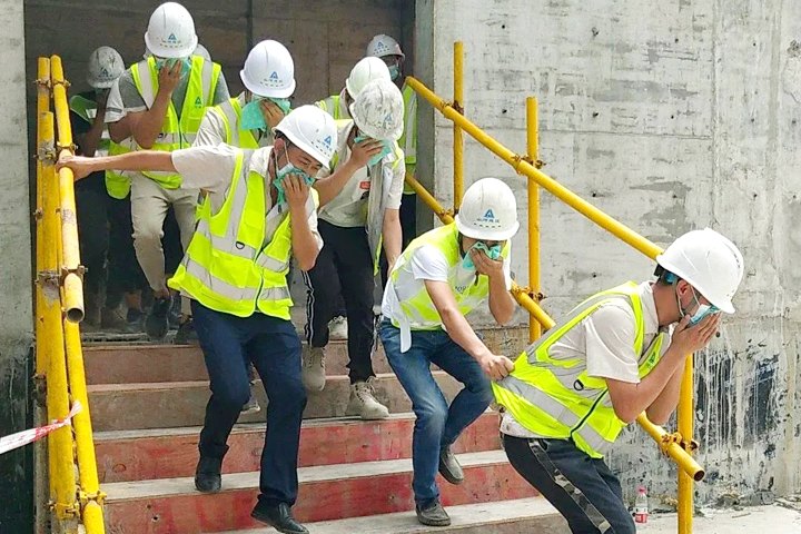 活動(dòng)中,工程人員健康檢測(cè)、啟動(dòng)宣告儀式、消防知識(shí)宣貫、緊急逃生演練、應(yīng)急滅火實(shí)操、急救知識(shí)講解等環(huán)節(jié)依次進(jìn)行。