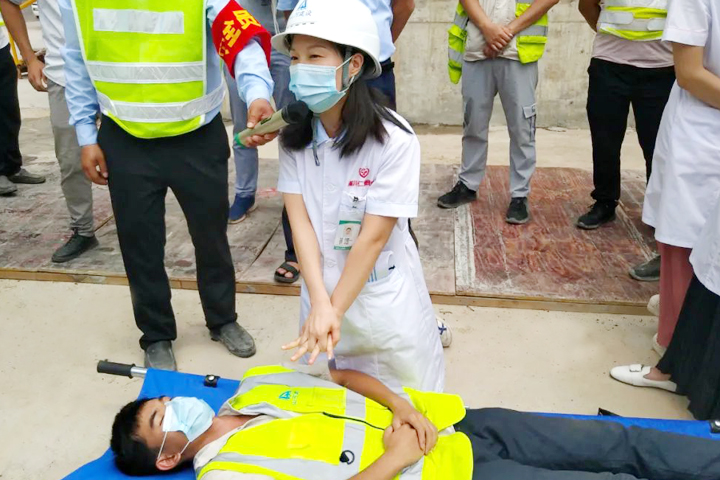 為提高項(xiàng)目管理及施工人員的安全意識(shí),檢驗(yàn)應(yīng)急反應(yīng)能力,項(xiàng)目部還邀請(qǐng)遂川縣仁愛(ài)醫(yī)院的醫(yī)生開(kāi)展急救培訓(xùn)演練,主要內(nèi)容是傷員情況檢查、人工呼吸、心肺復(fù)蘇等,提高了項(xiàng)目部處理突發(fā)公共衛(wèi)生事件的能力,確保在緊急情況下做到調(diào)度有方、措施得當(dāng)、出診及時(shí)、救治有力。