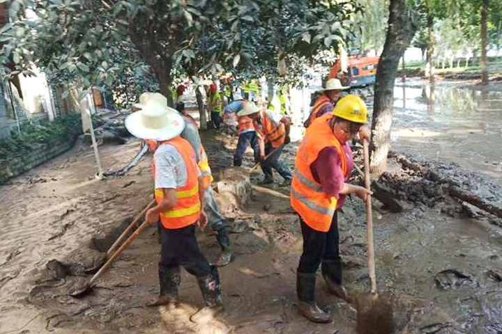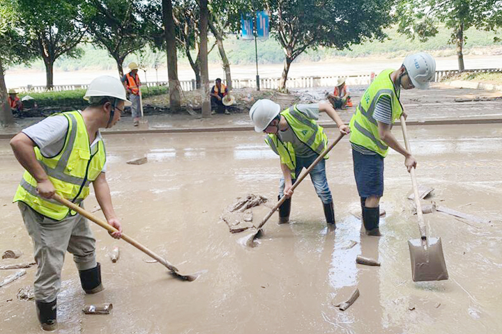 8月19日至20日,“長江2020年第5號洪水”“嘉陵江2020年第2號洪水”陸續(xù)通過重慶主城區(qū),巴南區(qū)魚洞江濱路、巴濱路、木洞、李家沱等低洼地區(qū)受災(zāi)嚴(yán)重。山河建設(shè)集團(tuán)西南公司碧桂園巴南工貿(mào)園項(xiàng)目部主動請纓,組織管理人員及工人成立了一支道路清淤志愿隊,積極投入到救災(zāi)工作中。
