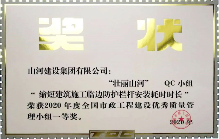 9月26日,在安徽合肥舉行的2020年度全國(guó)市政工程建設(shè)優(yōu)秀QC小組成果交流會(huì)上,山河建設(shè)集團(tuán)云南(廣西)公司遠(yuǎn)洋彩虹天地商業(yè)廣場(chǎng)項(xiàng)目“壯麗山河”QC小組發(fā)布的“縮短建筑施工臨邊防護(hù)欄桿安裝耗時(shí)時(shí)長(zhǎng)”成果以小組第一名的成績(jī)榮獲“2020年度全國(guó)市政工程建設(shè)優(yōu)秀質(zhì)量管理小組一等獎(jiǎng)”。這也是云南(廣西)公司第二次獲此殊榮。