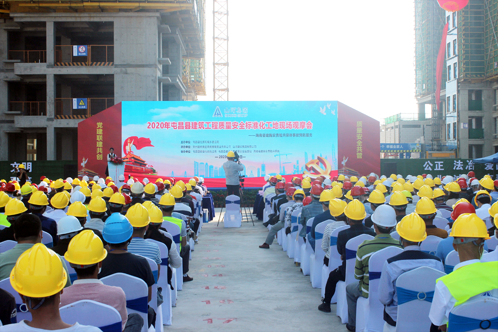 11月13日上午,山河建設(shè)集團(tuán)海南公司屯昌“林溪緣”華龍府項(xiàng)目施工現(xiàn)場(chǎng)熱鬧非凡,2020年屯昌縣建筑工程質(zhì)量安全標(biāo)準(zhǔn)化工地現(xiàn)場(chǎng)觀摩會(huì)在這里隆重舉行。屯昌縣副縣長(zhǎng)陳鵬程,海南省建設(shè)工程質(zhì)量安全監(jiān)督管理局、屯昌縣住建局等單位負(fù)責(zé)人,部分在建項(xiàng)目建設(shè)、施工、監(jiān)理單位代表400余人參加了觀摩會(huì)。