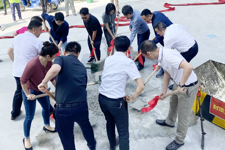 儀式上,各方代表共同揮動鐵鍬,完成最后一方混凝土澆筑,標(biāo)志著該項目主體工程正式封頂,為下一階段的施工打下良好基礎(chǔ)。