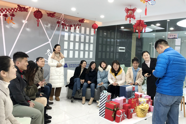 在陣陣歡笑聲中,跨年活動在員工風(fēng)采展示區(qū)拉開序幕,活動的“重頭戲”——交換禮物隨之開始。大家事先準(zhǔn)備好的精美禮物整整齊齊地碼在桌子上,并一一編上號碼。通過抽獎(jiǎng)的方式,每個(gè)人都收到了屬于自己的一份驚喜。拆開禮物的一剎那,發(fā)自內(nèi)心的喜歡溢于言表。參加活動的員工紛紛表示,這是來自同事的真心祝福,寓意深刻,是最難忘的一份禮物。