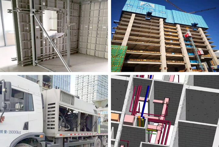 施工過程中,項目采用公司自主設計、生產(chǎn)的鋁合金模板,具有強度高、安全性好、優(yōu)質(zhì)環(huán)保的特點,支撐采用早拆原理,只用一套模板、三套支撐,實現(xiàn)了4天一層樓的澆筑速度;采用集成附著式升降腳手架技術,米字型造型簡潔大方,有效降低施工噪音污染、粉塵污染,起到保護環(huán)境的作用。