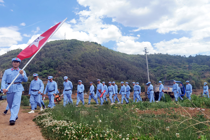 上午9時(shí),全體黨員、預(yù)備黨員、發(fā)展對(duì)象、入黨積極分子等近50人整裝出發(fā),乘車(chē)前往120公里外的丹桂紅軍村。這個(gè)看起來(lái)不起眼的小村莊,見(jiàn)證了中央紅軍巧渡金沙江的偉大壯舉,也見(jiàn)證了中國(guó)革命史上的一次重大轉(zhuǎn)折。抵達(dá)目的地后,大家身著戎裝,英姿颯爽地走進(jìn)丹桂紅軍村,開(kāi)始了這場(chǎng)紅色之旅。