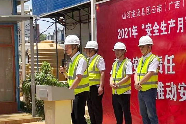 5月29日,山河集團正式啟動2021年“安全生產(chǎn)月”活動。云南(廣西)公司迅速響應(yīng),于當日下午在昆明龍四地塊城市棚戶區(qū)改造項目施工現(xiàn)場舉行了2021年“安全生產(chǎn)月”活動啟動儀式。公司副總經(jīng)理劉火焱、秦大順,工程團隊全體人員,各項目部代表等150余人參加了啟動儀式。