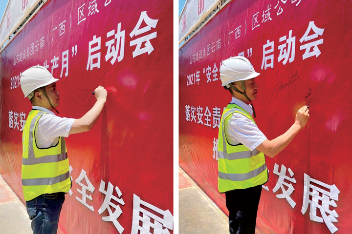 啟動儀式上,全體人員莊嚴宣誓,大聲說出“告別違章從我做起”的誓詞,一字一句鏗鏘有力,表達了抓好安全生產(chǎn)的信心和決心。隨后,大家在啟動儀式背景墻上簽名,承諾切實履行安全生產(chǎn)主體責任,把責任記在心上,扛在肩上,落實在行動上。