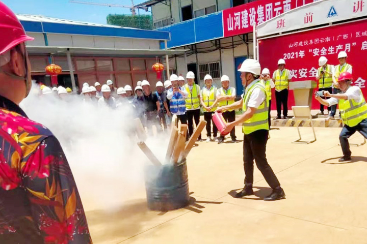 活動中,還進行了消防安全演練。演練小組負責人演示了滅火器的使用方法,讓大家現(xiàn)場體驗了消防器材的使用方法,學(xué)會了處理消防事故的方法,提升了滅火實戰(zhàn)技能,為施工安全保駕護航。