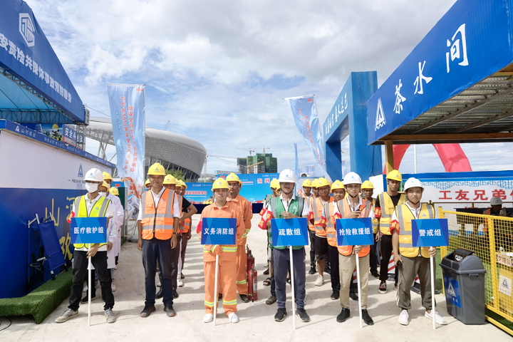 6月9日,山河建設(shè)集團(tuán)海南公司承建的萬寧紅星美凱龍三標(biāo)段項(xiàng)目施工現(xiàn)場人頭攢動,萬寧市2021年安全生產(chǎn)月啟動儀式暨安全應(yīng)急演練現(xiàn)場觀摩會在這里舉行。萬寧市住房和城鄉(xiāng)建設(shè)局局長陳云鋒,建設(shè)工程質(zhì)量安全監(jiān)督站站長嚴(yán)云,安委辦主任、應(yīng)急管理局局長林靖等領(lǐng)導(dǎo)出席活動,海南公司常務(wù)副總經(jīng)理程智、工程團(tuán)隊(duì)、項(xiàng)目管理人員及建設(shè)單位、監(jiān)理單位、萬寧市各在建項(xiàng)目代表等300余人參加了活動。