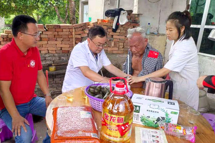 活動中,海南省湖北商會儋州分會黨支部書記、山河建設(shè)集團(tuán)海南海花島項(xiàng)目部黨支部書記童學(xué)軍帶隊(duì)走訪了5名黨齡超過50年的老黨員、5名生活困難的黨員,為他們送去慰問金及米、油、牛奶、蘄艾眼貼等慰問品,還帶著醫(yī)生上門服務(wù),為他們進(jìn)行了健康體檢。走訪中,黨員、職工和老黨員親切交流,仔細(xì)詢問了他們的生活、身體狀況,叮囑他們要保重身體,安享晚年。