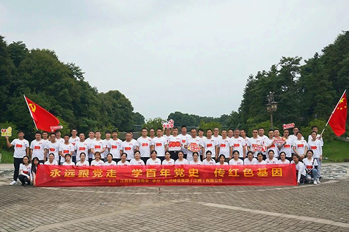 為慶祝中國共產(chǎn)黨成立100周年,6月26日,山河建設(shè)集團江西公司組織機關(guān)黨員員工70余人來到南昌灣里金峽谷風(fēng)景區(qū),開展了以“永遠跟黨走、學(xué)百年黨史、傳紅色基因”為主題的紅色團建拓展活動。
