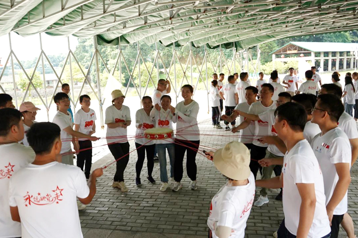 下午的團隊挑戰(zhàn)活動中,參訓(xùn)人員分成3隊,先后完成了“水到渠成”“鼓舞風(fēng)揚”“不倒森林”等拓展項目,大家各司其職、同心協(xié)力,各項任務(wù)取得圓滿成功。動力圈活動環(huán)節(jié),所有人手拉手圍成圓圈,每個人用力向外拉緊繩子,深刻感受了團隊擰成一股繩的堅韌力量。充分的信任與合作,有效提升了團隊的合力與戰(zhàn)斗力。