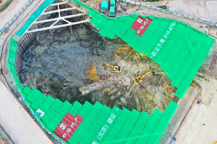 “天幕”采用阻燃材料,減少了消防安全隱患,同時通過科學的標高設計,既不耽誤施工作業(yè),又可回收循環(huán)使用,規(guī)避了常規(guī)防塵網污染土壤、頻繁更換、影響施工、耗費人力物力等弊端,為綠色施工、智慧建造提供了新的路徑。