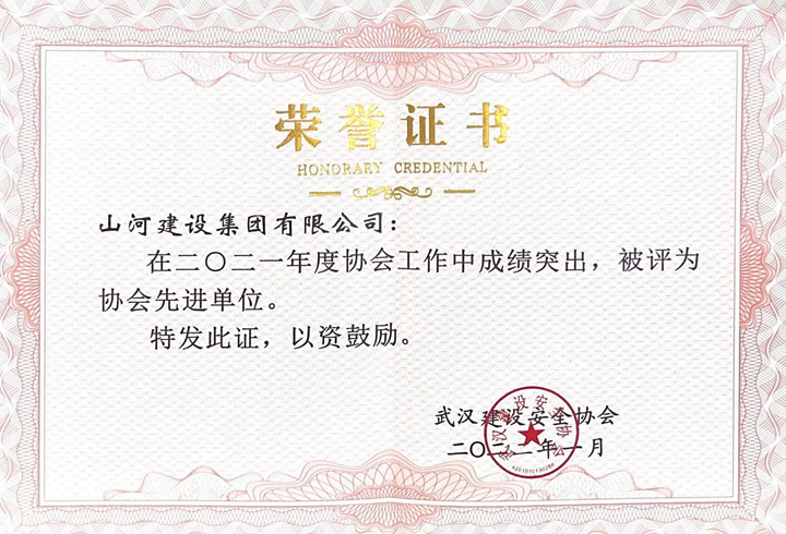 山河集團(tuán)獲評2021年度武漢建設(shè)安全協(xié)會工作先進(jìn)單位