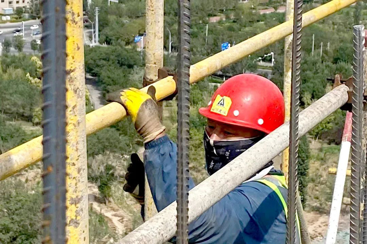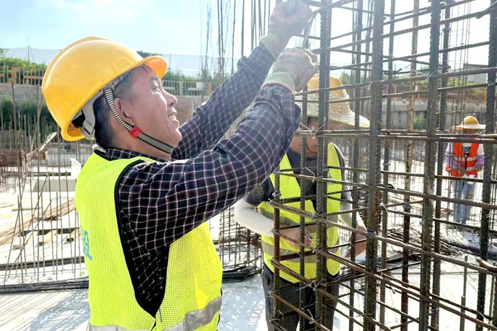▲手腕翻轉(zhuǎn),編織樓宇“筋骨”