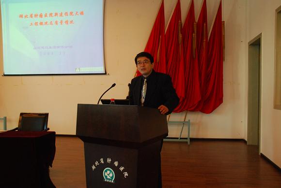 11月27日上午,山河集團(tuán)舉行了項目管理經(jīng)驗交流會。會議共分為三個部分,首先全體與會人員參觀在建項目創(chuàng)業(yè)大廈,接著參觀創(chuàng)“魯班獎”項目―已竣工的省腫瘤醫(yī)院住院大樓,最后在腫瘤醫(yī)院會議廳舉行現(xiàn)場經(jīng)驗交流會。董事長程理財、黨委書記舒先厚、總經(jīng)理黃林及項目經(jīng)理、公司員工共100余人參加了大會。會議由黃林主持,項目經(jīng)理程友才、工程部經(jīng)理林中茂做了經(jīng)驗交流和創(chuàng)魯班獎的報告,程理財董事長和黃林總經(jīng)理也在會上做了重要講話。